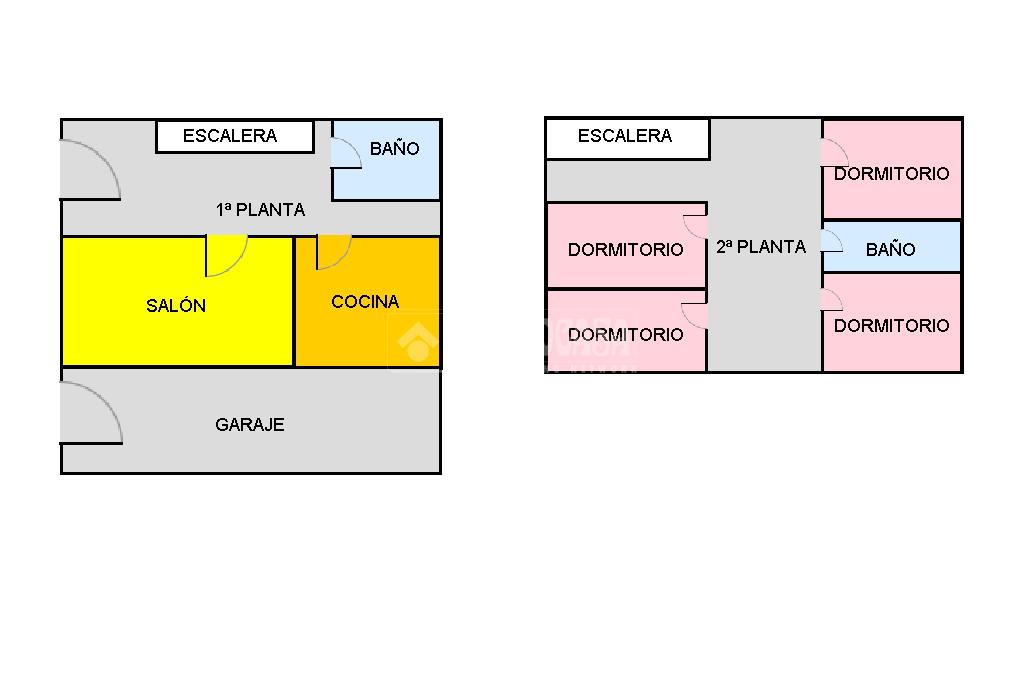 En la planta inferior, nos encontramos un aseo, el salón comedor y la cocina independiente con acceso al patio. En la planta superior, tenemos cuatro habitaciones, dos de ellas con acceso a la terraza, y el segundo baño completo.