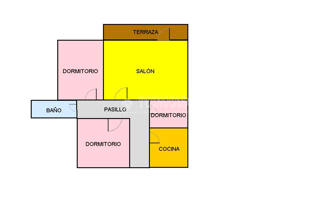 Continuamos por el pasillo y accedemos al salón, con amplia terraza, que lo convierte en un espacio de reunión muy luminoso. Seguidamente, tenemos el dormitorio principal y el baño completo.